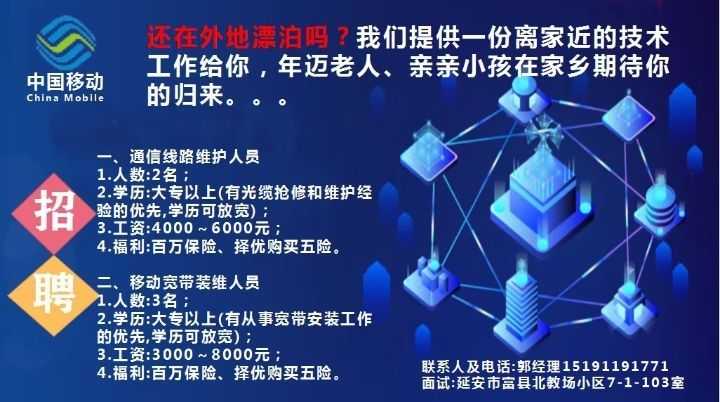 招聘公司:中移铁通富县支撑服务中心招聘职位:智慧家庭工程师主要职责:负...